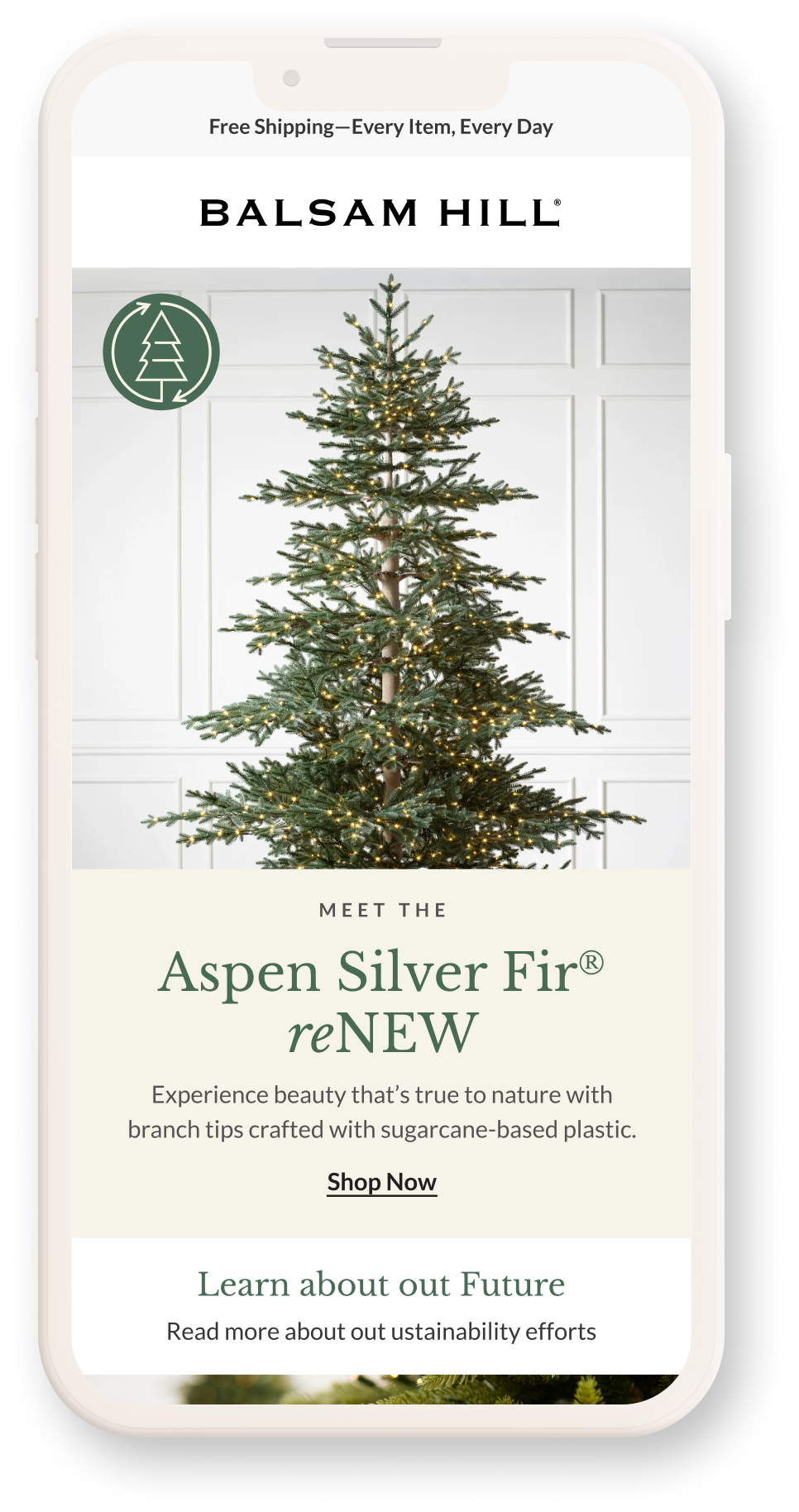 NextGen is Balsam Hill’s long-term sustainability and innovation platform, focused on rethinking how premium artificial trees and décor can be designed, sourced, and manufactured with greater environmental responsibility. As the brand continues to lead in realism and quality, NextGen represents a parallel commitment to material innovation, circularity, and long-term impact.